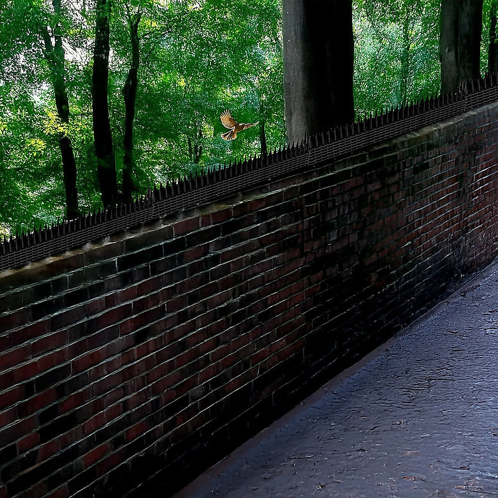 This spiked wall deterrent keeps birds at bay! All you need to do is place the spiked fence in locationswhere they perch or gain entry. The material is made up of hard plastic which won't hurt but will give a slight pinch to animals that will deter them. Apart from homes, this product can also be used on street lamps, chimneys, commercial buildings, and even restaurants where birds or cats are likely to stay.