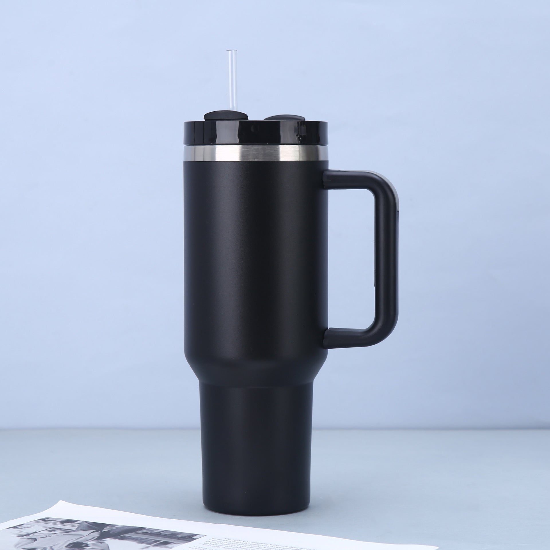 Black 40oz Stainless Steel Tumbler with Handle & Straw - Large Capacity Insulated Travel Mug