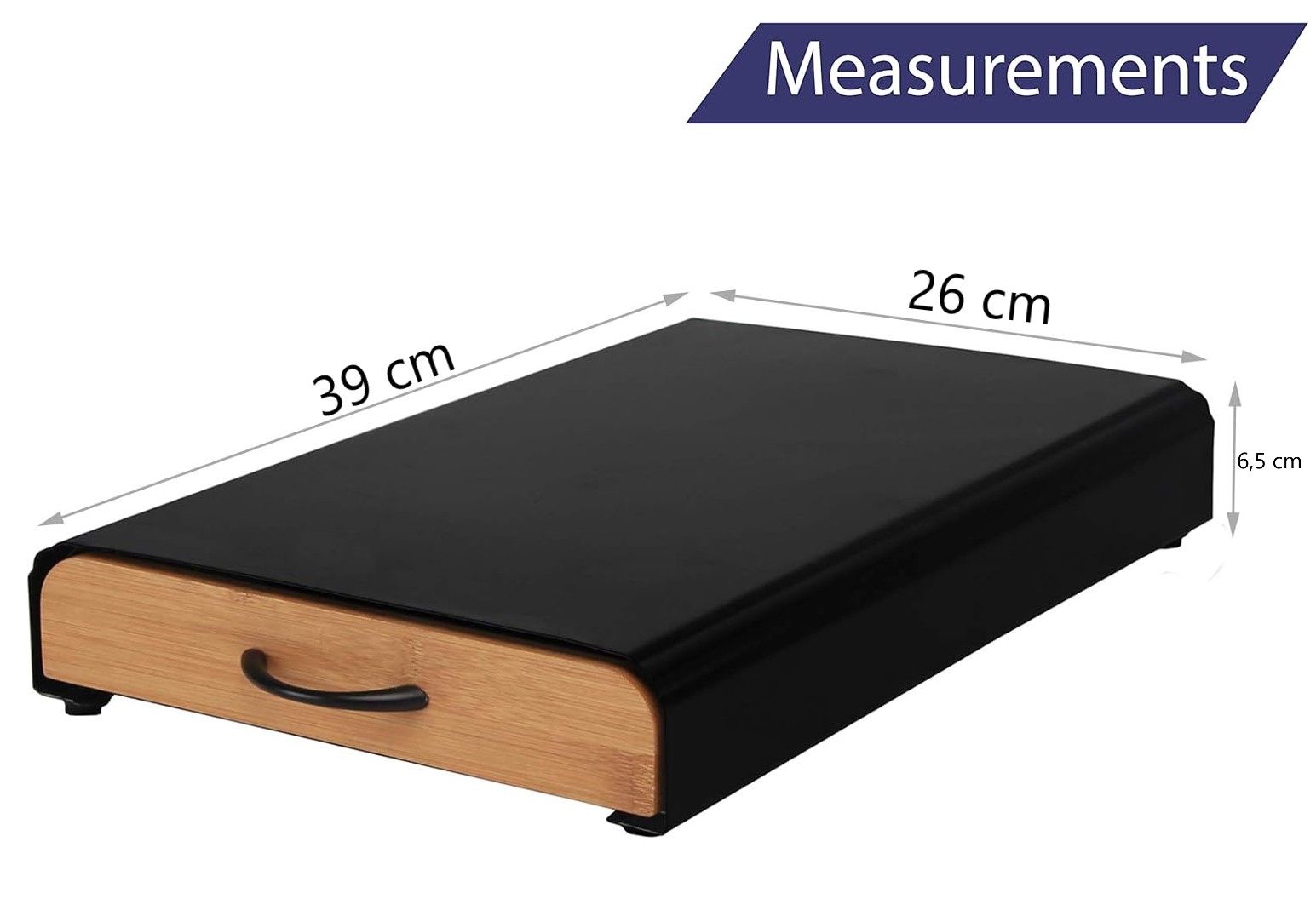 - Space saving and modern design: the size of 39 x 26 x 6.4 cm is suitable for home or office. This organizer combines the coffee machine and pods in one location, decluttering your space. The minimalist design adds a touch of elegance to your kitchen, office, or coffee shop.