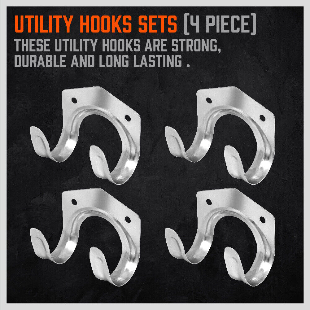 19-PIECES INCLUDING - 15Pcs SPRING GRIPS & 4Pcs U-UTILITY HOOKS & 20 mounting screws. The installation is very easy and convenient, give your spades, brooms, mops, hammers, rakes, baseball bats and other items a good place to belong.
