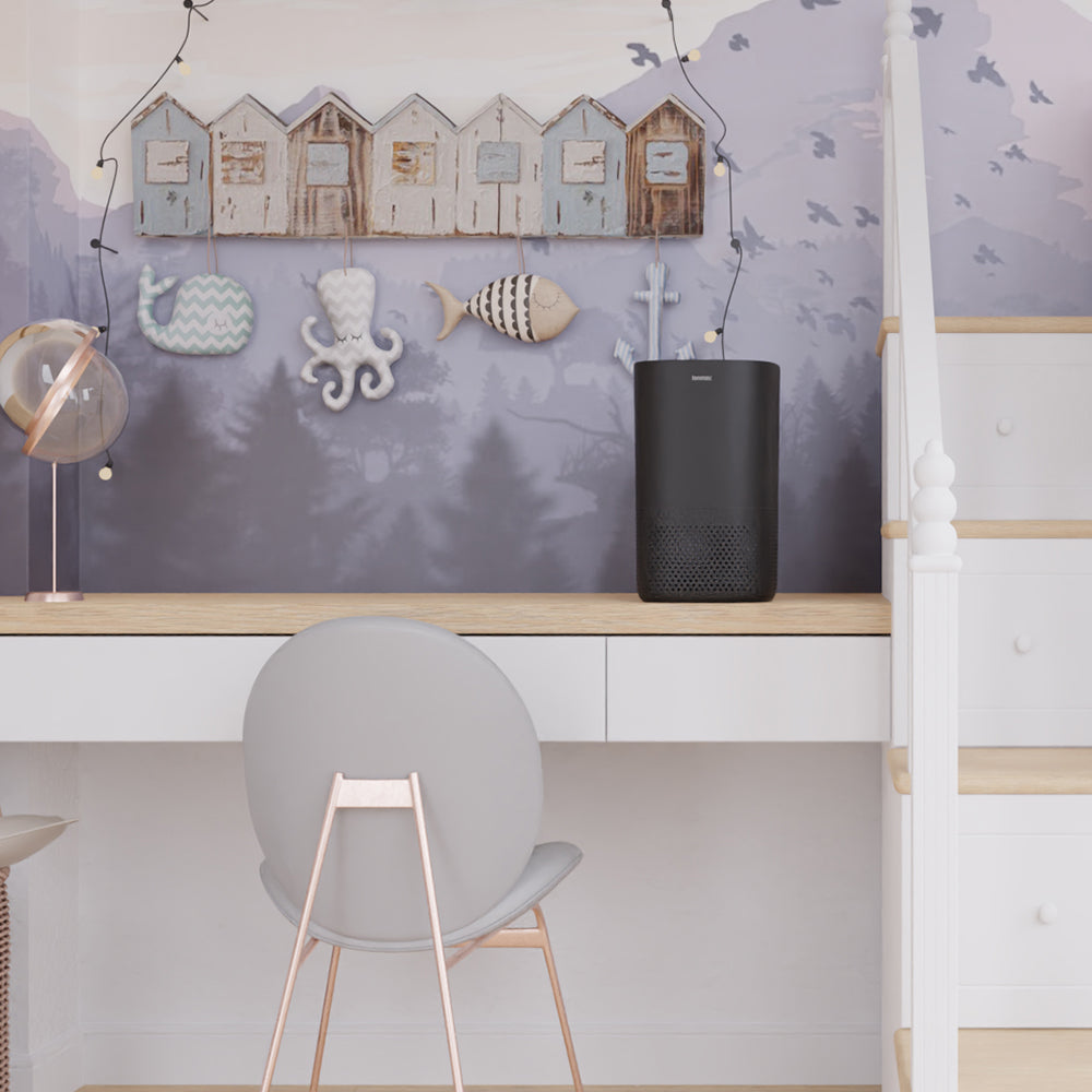 With 360-degree air sterilisation, a minimalist touch control panel and a sophisticated matte black design, the Ionmax Selah air purifier adds a modern touch to your home while efficiently cleaning the air.