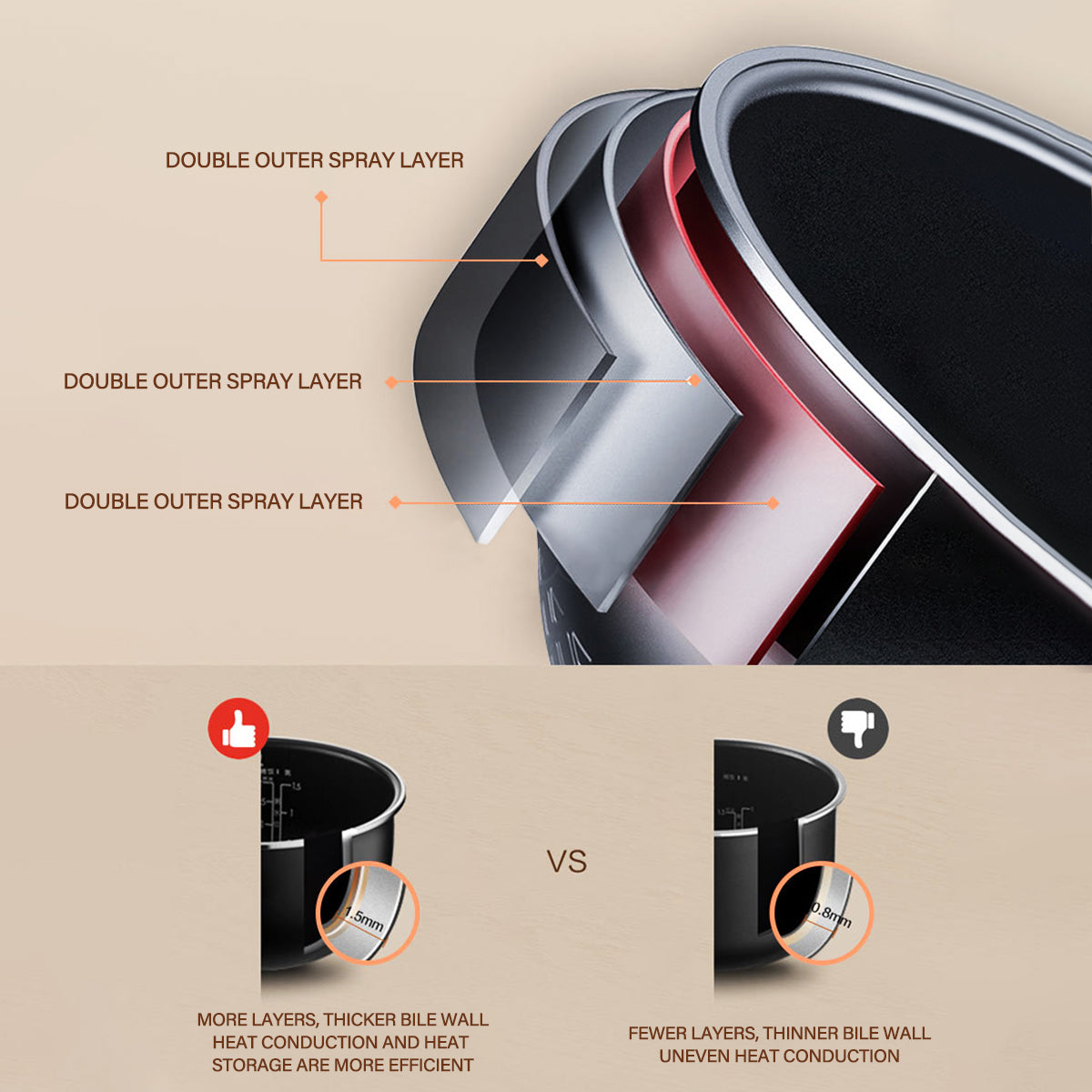 - 1.5mm Multi-layer inner pot