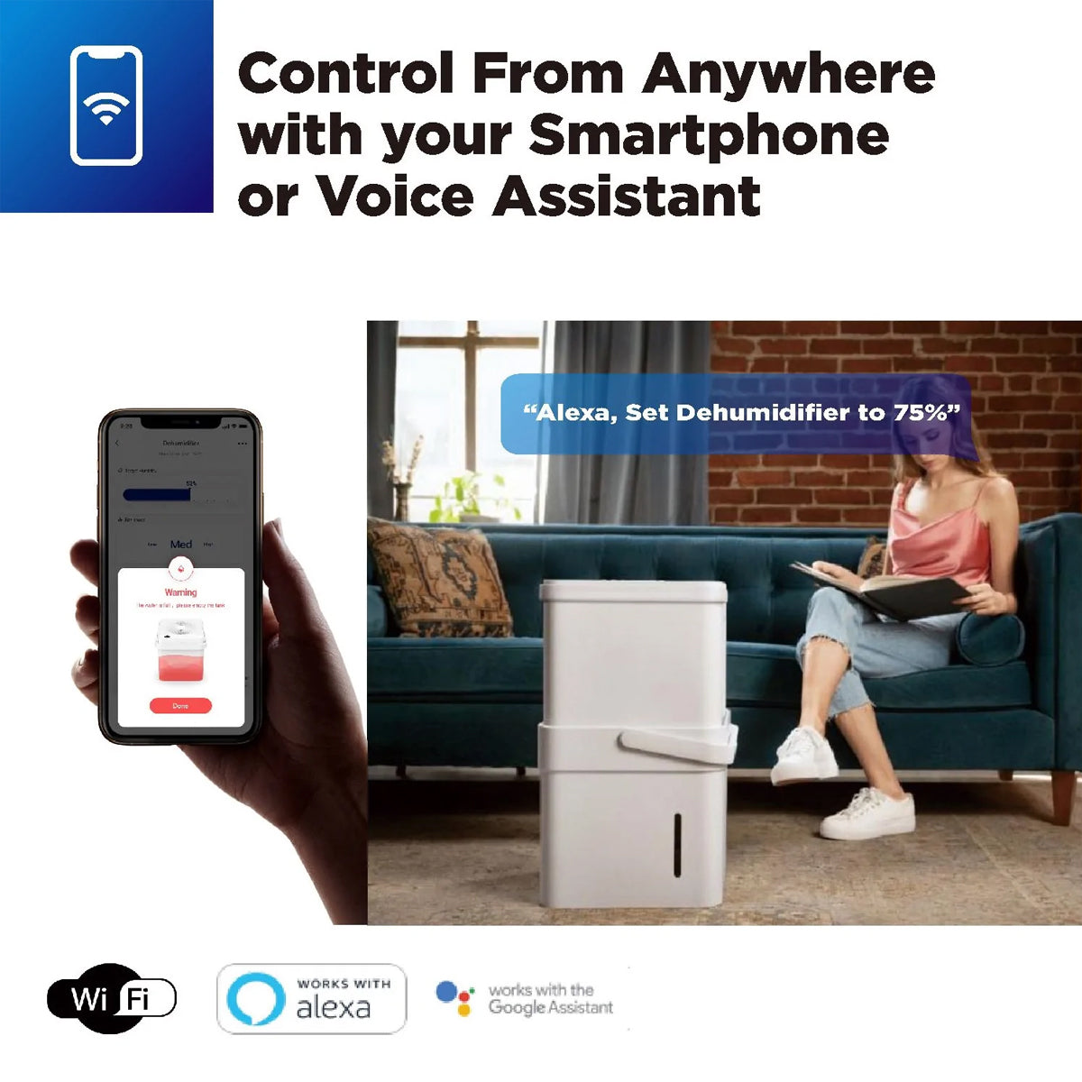 - Control from anywhere with your smartphone or voice assistant