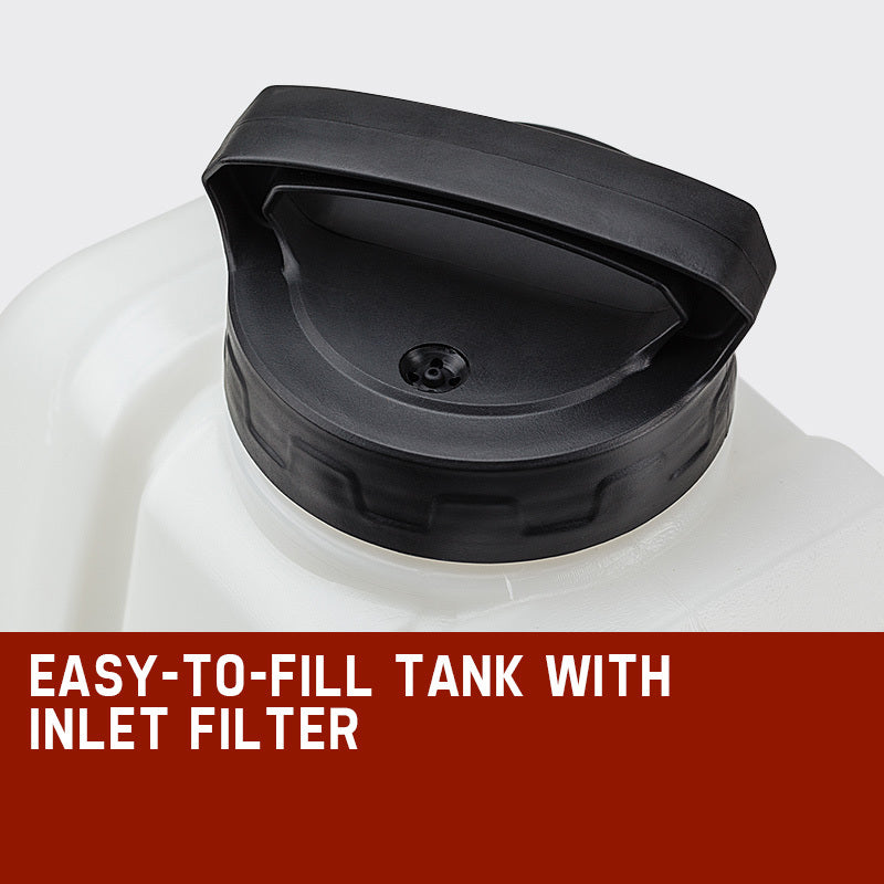 Filling the fifteen litre tank has been made easy with an extra wide inlet and inlet filter to ensure smooth operation. The translucent 15L tank is marked with 4 increments for easy measuring and monitoring, while it's angular design increases its strength. The control panel is conveniently built into the side of the tank for a single body operation.